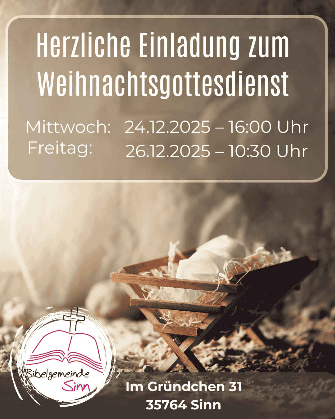 In dieser besonderen Zeit möchten wir gemeinsam die Botschaft von Hoffnung, Frieden und Licht feiern und laden Sie hiermit herzlichst zu unseren Weihnachtsgottesdiensten in die Bibelgemeinde Sinn ein. Wir freuen uns sehr darauf, Sie in dieser wundervollen...